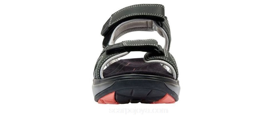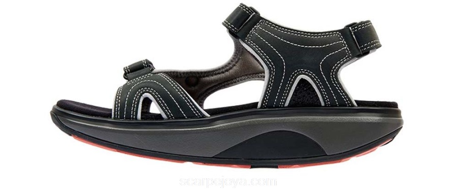 Sporty Sandal with upper made of leather. Has a soft padded neoprene lining and adjustable straps on the heel, instep and forefoot. Has normal width of a footbed. Curve sole provides roll movement that forces the body to balance and activates muscles in the back and the feet. Suits people that wish to train a good posture and vigorous exercise. This shoe is suitable as working shoe.
